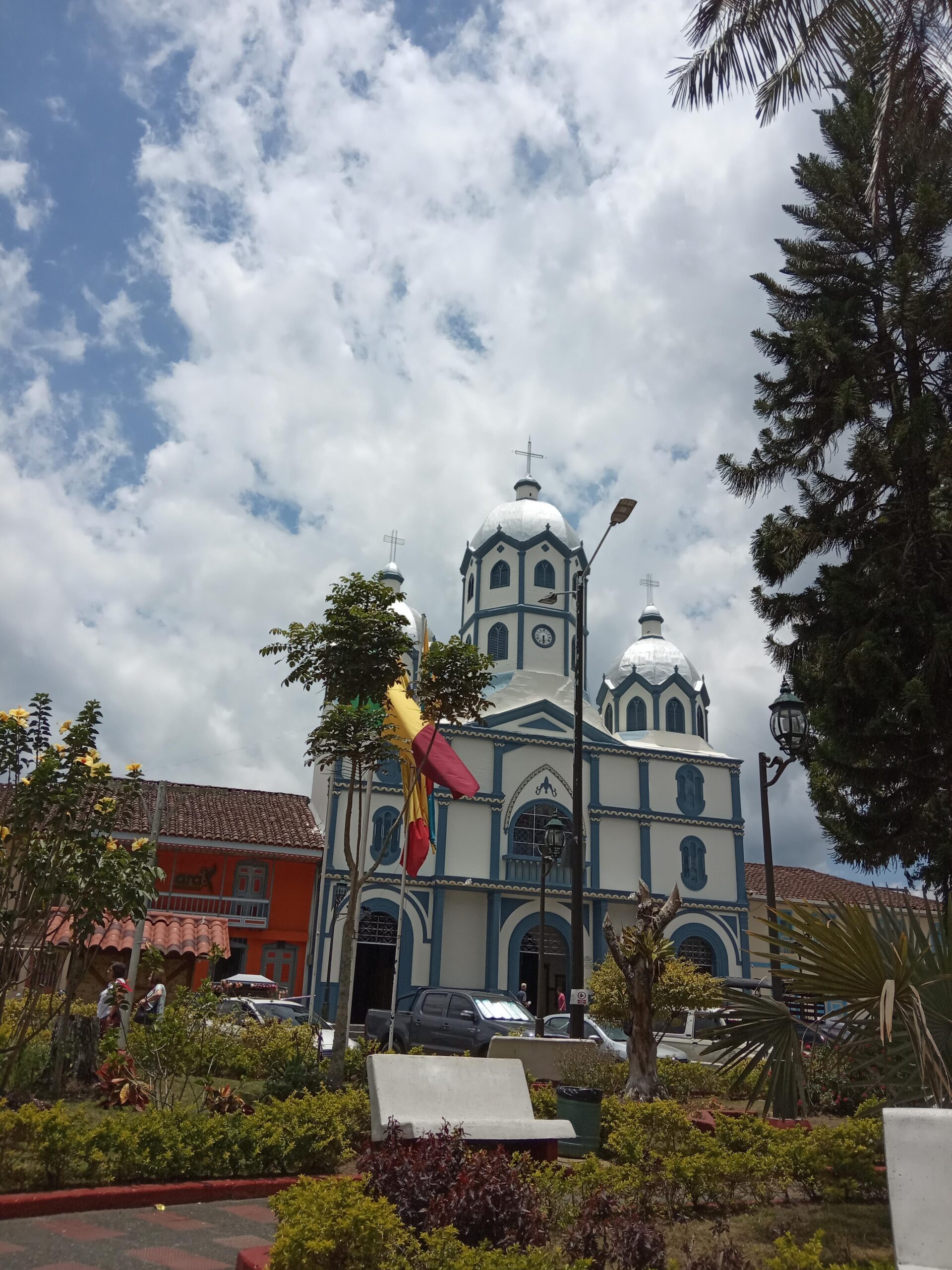 La construcción de la Iglesia María Inmaculada comenzó en 1895 bajo la dirección del presbítero Jesús María Restrepo y se completó en 1905 con la ayuda de Francisco de Paula Montoya, cuando fue consagrada como parroquia. Más allá de las fechas, lo impresionante es la historia de su construcción: enormes columnas de madera fueron levantadas por "cientos de brazos fuertes", y cada cúpula refleja el esfuerzo colectivo. Su cielo raso, tallado en madera por artesanos como don Arcadio Arias, discípulo del antioqueño Álvaro Carvajal, es una verdadera obra de arte que aún hoy sorprende a los visitantes.